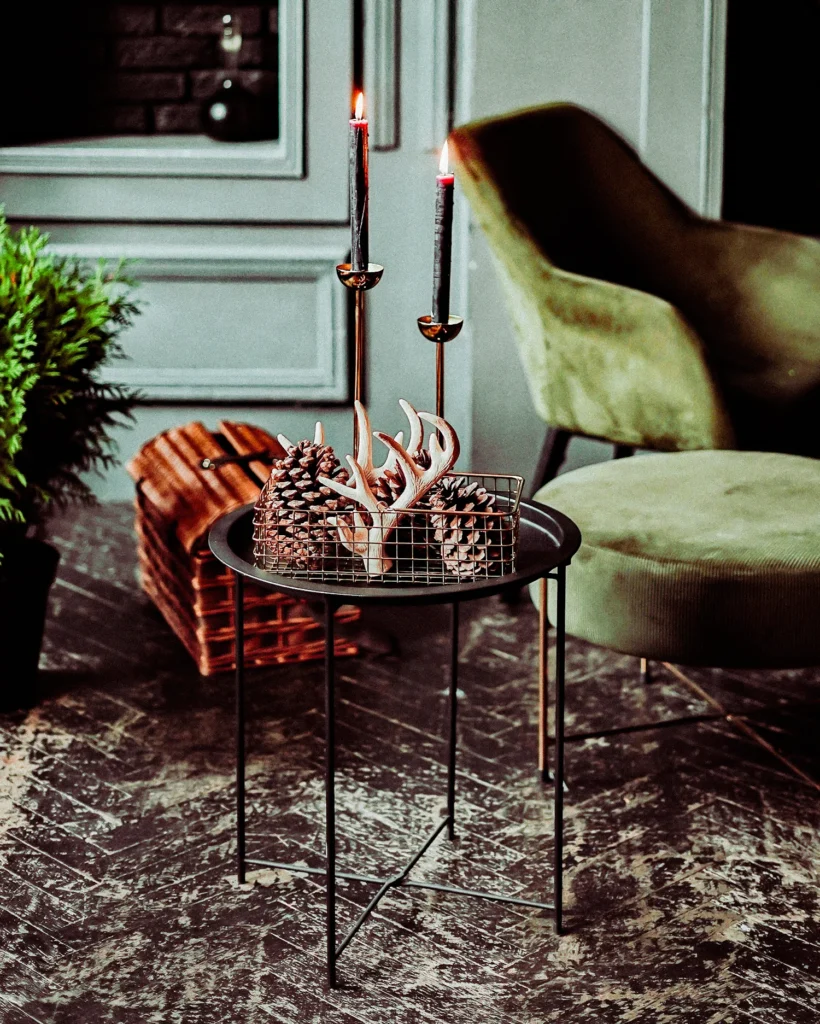 - Style simple vignettes: Group 3–5 items: a candle, a small ornament, a sprig of pine, and a photo. Leave clear space so it feels calm, not crowded.